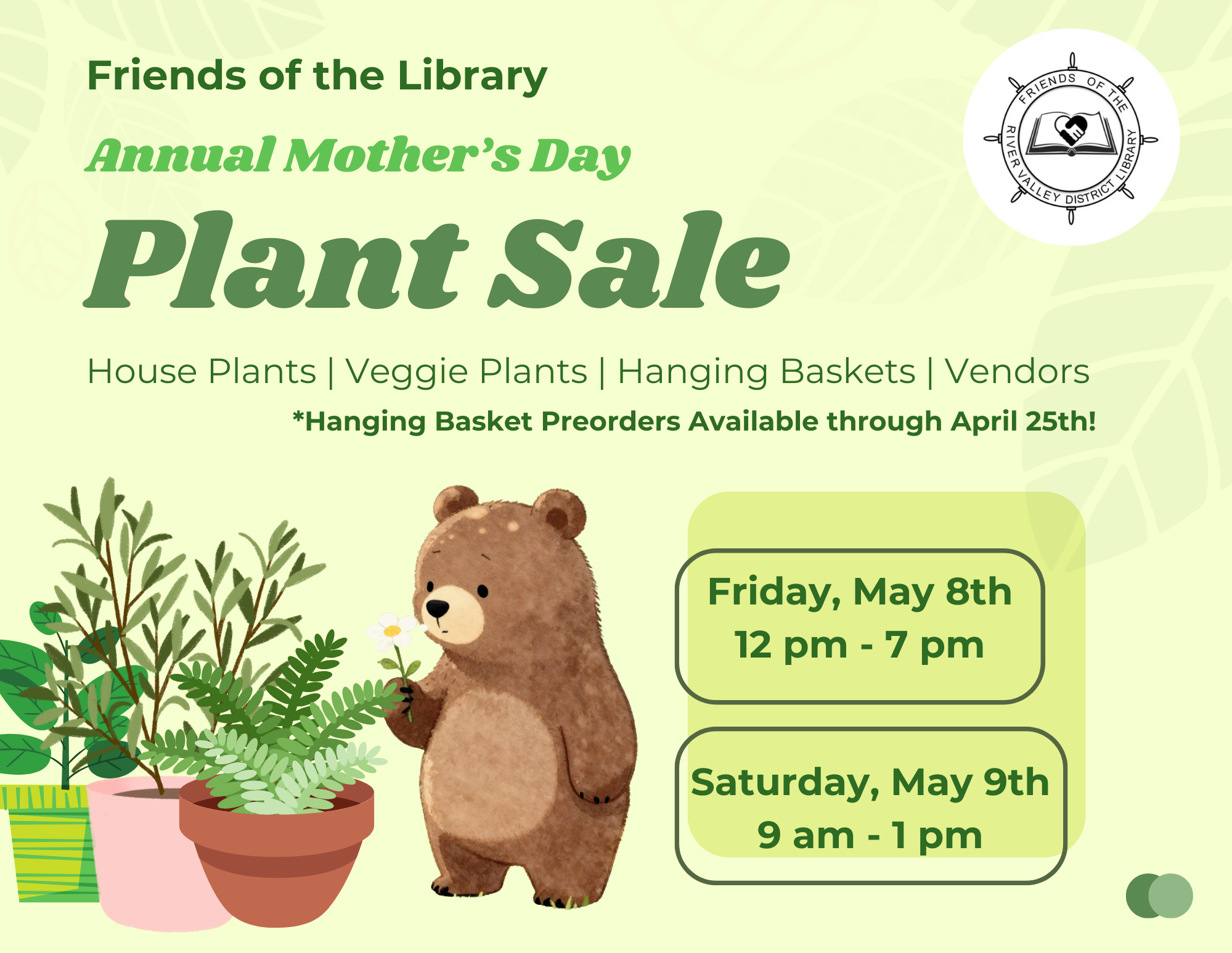For more information email: friendsarefun@rivervalleylibrary.org